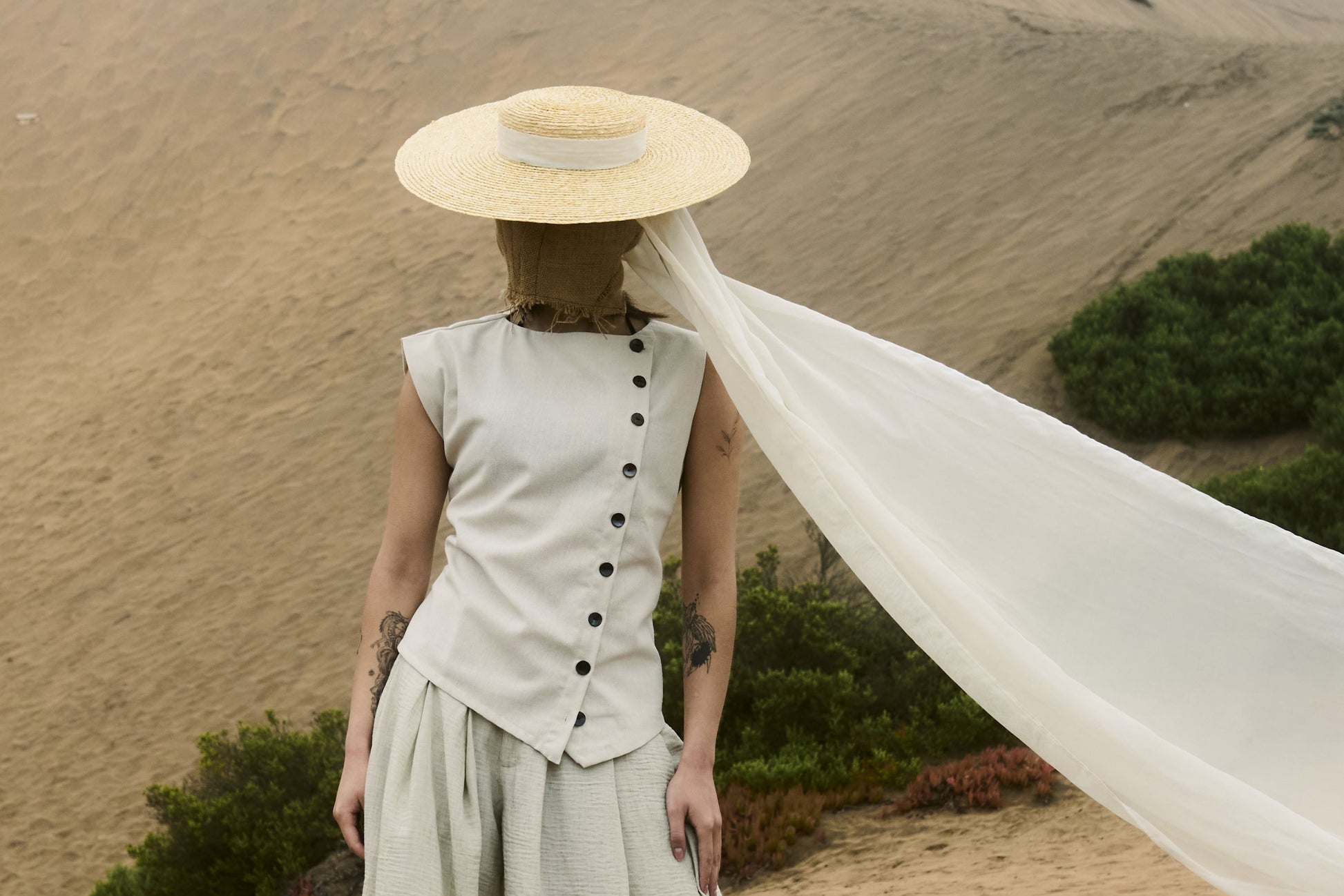 Ligera como una brisa y estructurada como una intención. La Kaze Shirt nace desde la idea de movimiento: una prenda que respira con el cuerpo y acompaña el verano sin esfuerzo. Confeccionada en lino para mantenerte fresco, y diseñada con una forma asimétrica dándole esta forma a sus hombros, largo de la prenda y sus preciosos botones que rompe la simetría clásica transformando lo simple en algo distintivo